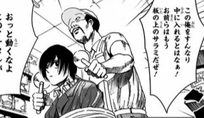 殺連監獄セキュリティが重要な施設の警備員かつ「名物」と言われるくらいなので、そこそこの実力はありそうではあるが、ボイルには瞬殺される程度。殺連関東支部の武部や猪田と同程度といったところか。