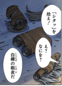 この記事には最新話までのネタバレが含まれています。 白樺の樹皮。油が多くて長く燃えるので松明に使える。 ▼ゴールデンカムイの他用語はこちら▼ あわせて読みたい 【ゴールデンカムイ】用語一覧 刺青人皮 ウェンカムイ シタッ マタカリプ 脱獄囚 ゴールデンカムイ この記事が気に入ったら フォローしてね! Follow @@choujujutsu よかったらシェアしてね! URLをコピーしました! URLをコピーしました! コメント コメントする コメントをキャンセルコメント ※ 名前 ※ メール ※ サイト 次回のコメントで使用するためブラウザーに自分の名前、メールアドレス、サイトを保存する。