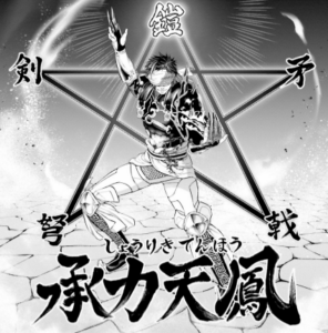 魔神・蚩尤との戦いの中で、鎧・矛・戟・弩・剣の5つ体系からなる究極武術、蚩尤を会得し、様々な技を繰り出していく。特に防御力に優れ、蚩尤 鎧式 承力天鳳は一撃必殺の破壊力をゆうすハデスの嵐を破壊せし者(ペルセポネ・ロア)を受け流し、カウンターでダメージを跳ね返してみせた。また、生き物に存在する気の流れの要を見抜く目を持っており、そこに息を飛ばすことで気の流れを乱し、相手の力を削ぐことができる蚩尤 弩式 波流亀と合わせることで、通常承力天鳳でも受けきれない攻撃も受け流すことができる。そこに防御に特化した戦乙女アルヴィトの神器錬成神羅鎧袖が合わさると、神の中でも最強の攻撃力を誇るハデスをもってしても崩すのは困難。加えて、鎧を変形させ神羅鎧袖改 始皇勾践剣を作り出し、「最強の守り」を攻撃の手段に変えることも可能。これも承力天鳳と波流亀を合わせることで、ハデス最強の一撃、血が導きし曙光(イーコール・エーオース)をも打ち破った。