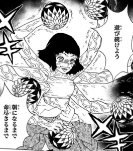 鞠を生み出し武器とする能力。鞠による攻撃は直撃すれば頭部が吹き飛ぶほどに強力。また、鞠は無数に生み出せ、腕を増殖させることで複数の鞠による同時攻撃も可能となっている。