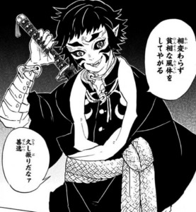 獪岳は十二鬼月の上弦の陸の鬼。ただ、「お前の戦ってた上弦はまだ自分の術や能力を使い熟せていなかった」と言われていたので、実際は上弦クラスの強さにはまだ達していなかったと思われる。