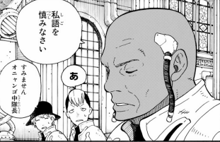 【第1特殊消防隊中隊長】 第1特殊消防隊の中隊長を務める。ただ、一度現役を退いているので、完全現役の中隊長よりは実力は劣りそうである。 【戦闘シーンがない】 オニャンゴは作中での戦闘シーンがなく能力も不明。なので、強さの判断ができないキャラで... -